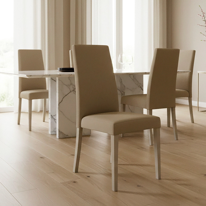 Igorina, Antonello. Луксозен италиански стол за трапезария, изцяло тапициран с кожа, еко кожа или текстил. а>