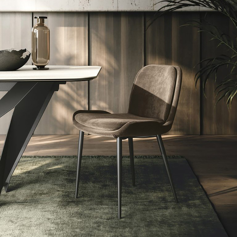 Колекция Cadira, Sovet. Модерен италиански трапезен стол с метална основа и тапицерия от кожа или текстил. а>