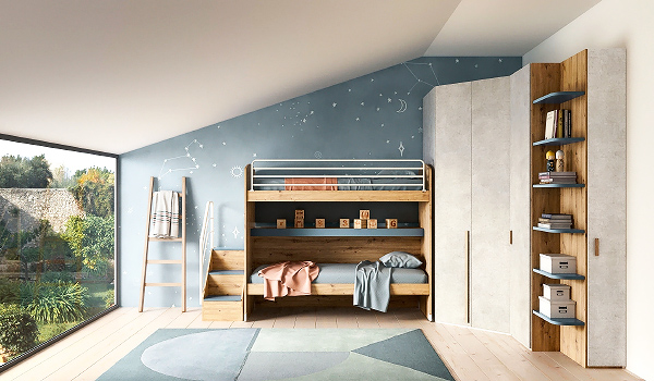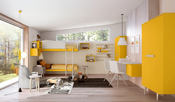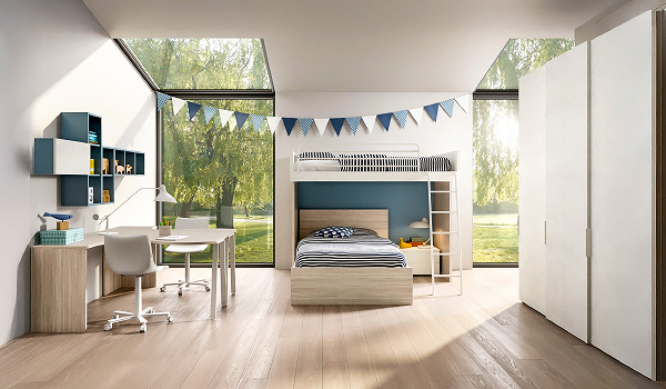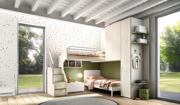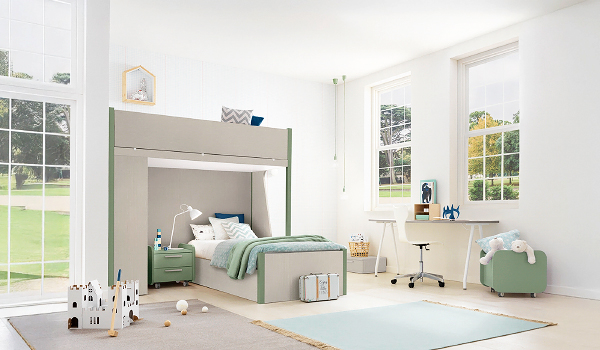 Bloom, Samoa. Модерно италианско разтегателно легло за детска стая, тапицирано с кожа или текстил. а>