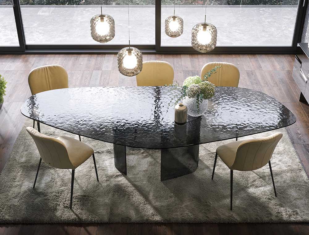 Луксозна италианска трапезна маса с изискан минимализъм и скулптурна естетика.
