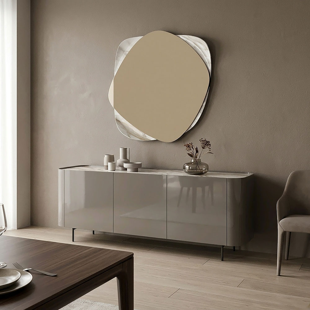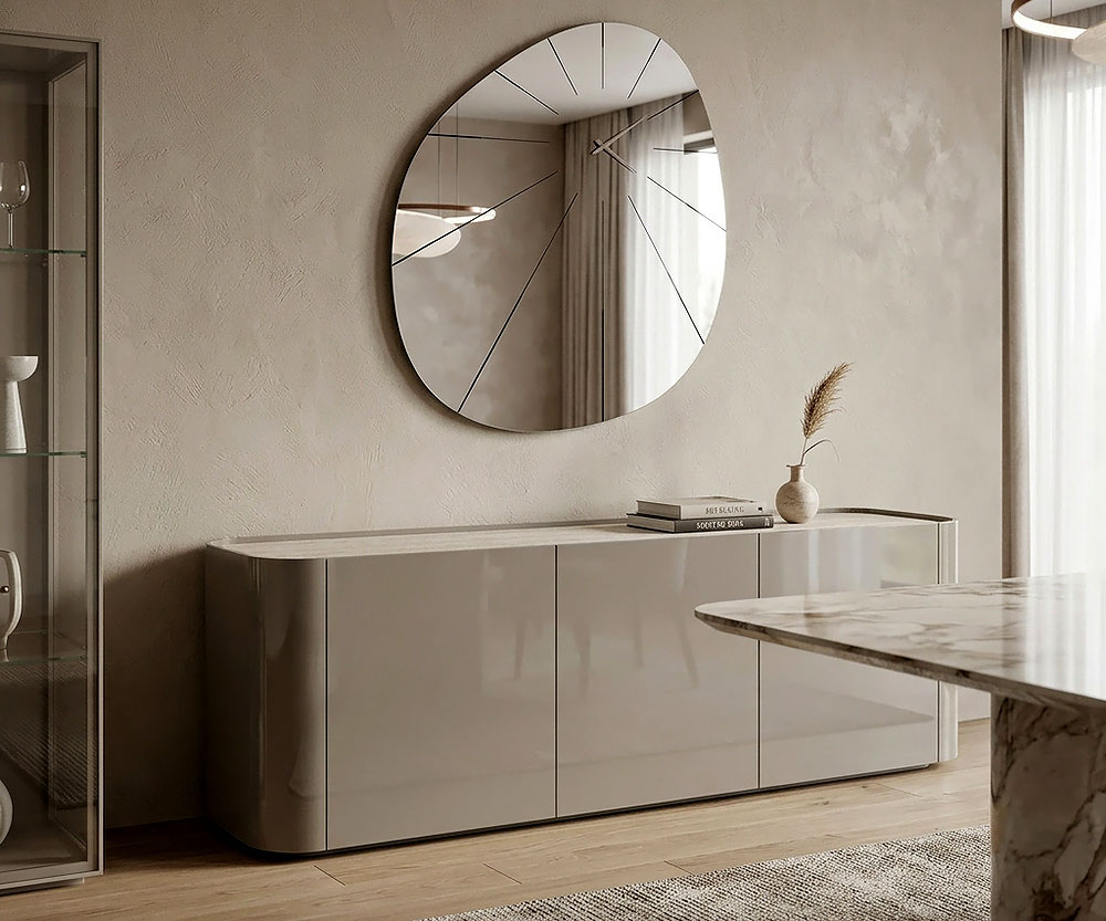 Луксозен италиански скрин с изчистен дизайн и балансирана естетика, характерни за съвременната италианска мебел.