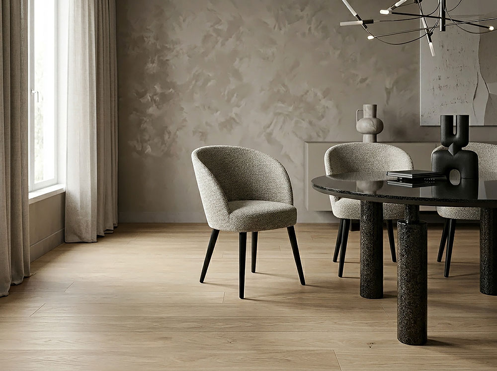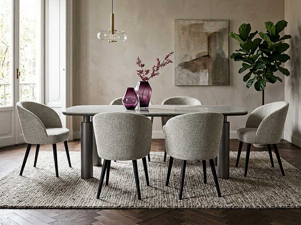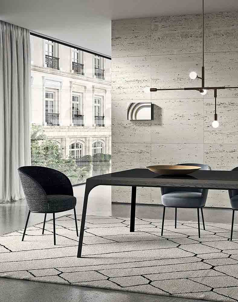 Луксозен италиански трапезен стол, съчетаващ комфорт и изчистена съвременна визия.