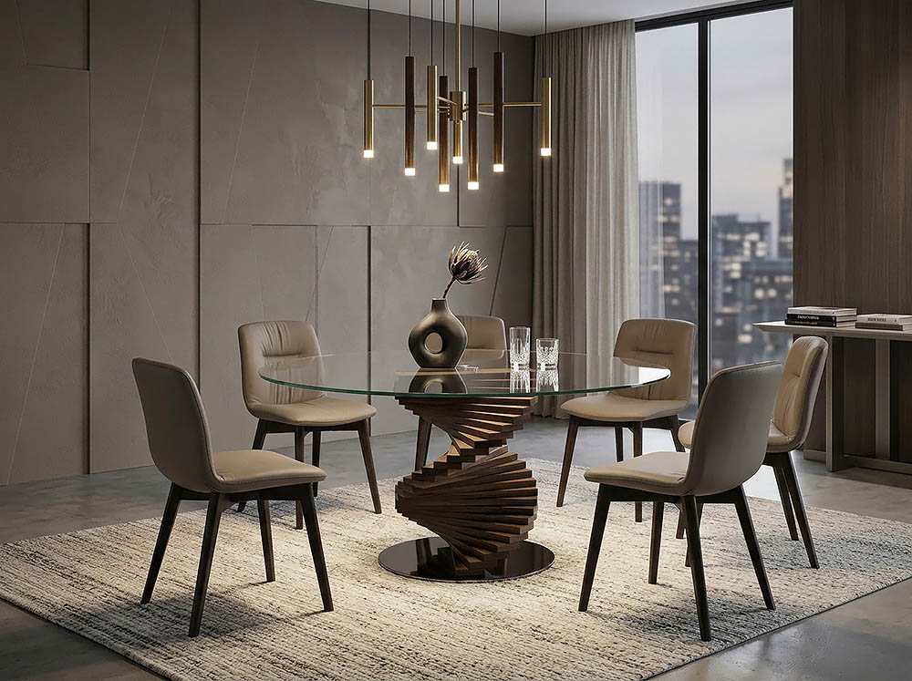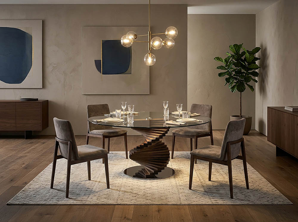 Луксозна италианска маса за трапезария с основа от масивна дървесина.