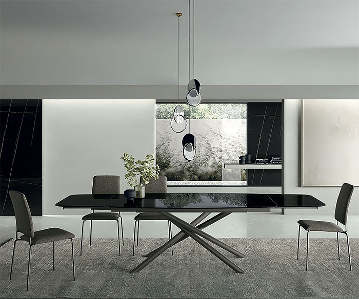 Wave, Sedit . Модерна италианска маса за трапезария с метална основа и фиксиран или разтегателен плот. а>