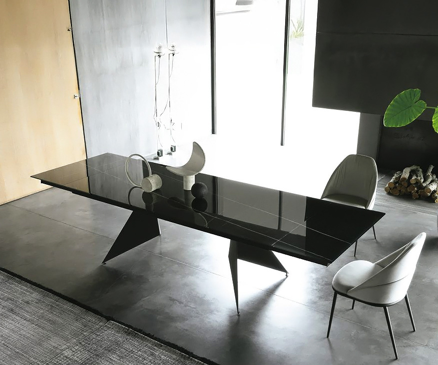 Charon, La Seggiola. Модерна италианска маса за трапезария с разтегателен стъклен плот и масивна основа. а>