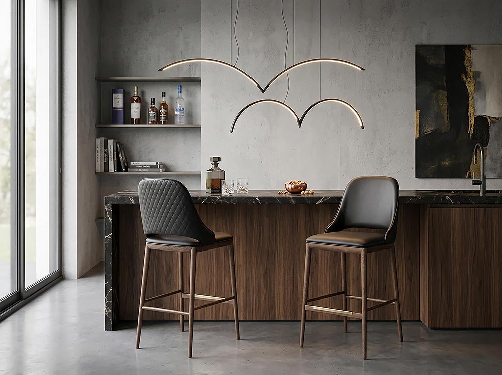 Моделът се предлага в две височини на седалката – за кухненски остров и за по-висок бар плот.