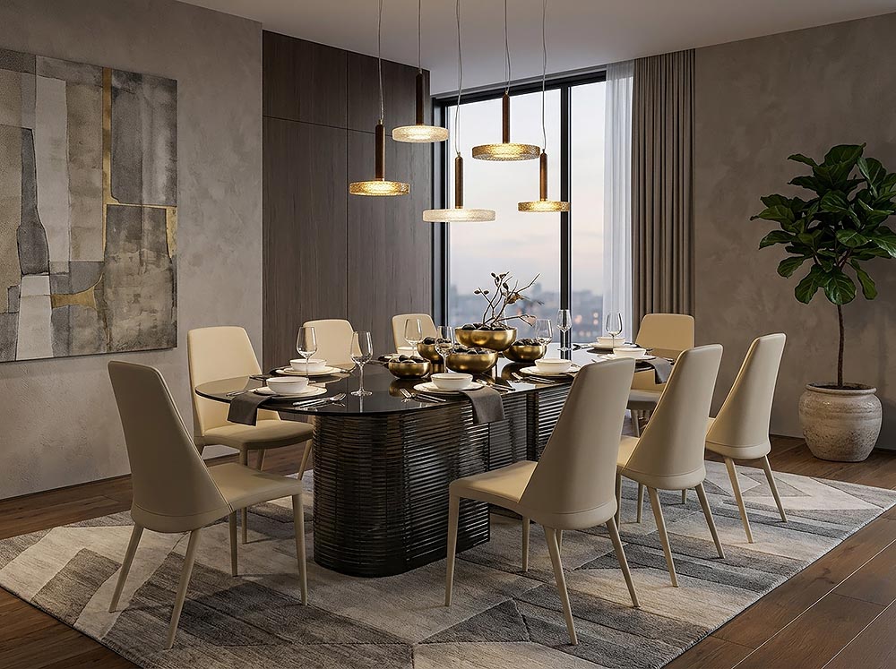 - Начало / Продукти / Трапезария / МОДЕРНИ МЕБЕЛИ ЗА ТРАПЕЗАРИЯ / Маси / Millerighe, Tonin Casa. Луксозна италианска стъклена трапезна маса.
