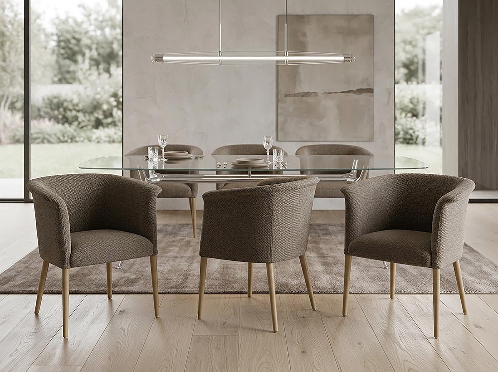 - Начало / Продукти / Трапезария / МОДЕРНИ МЕБЕЛИ ЗА ТРАПЕЗАРИЯ / Столове / Столове с тапицерия / Milo, Presotto. Модерен италиански трапезен стол с подлакътници.