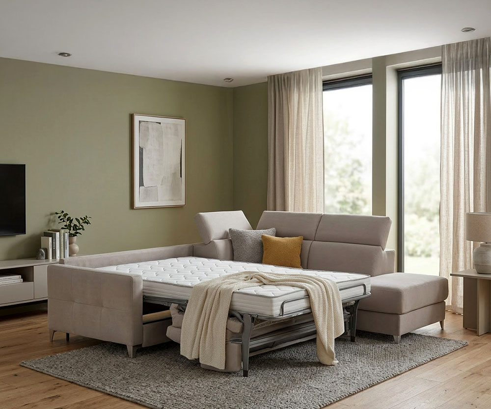 Aurora, Nicoline. Луксозна италианска мека мебел с разтегателен механизъм и кожена или текстилна тапицерия. а>